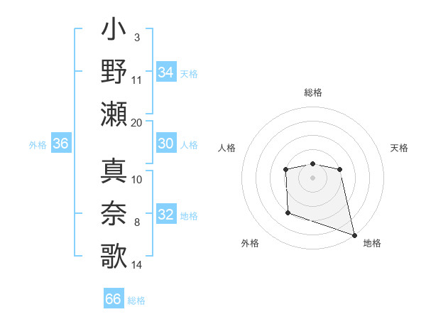 小野瀬 真奈歌さんを姓名の画数から五運を鑑定