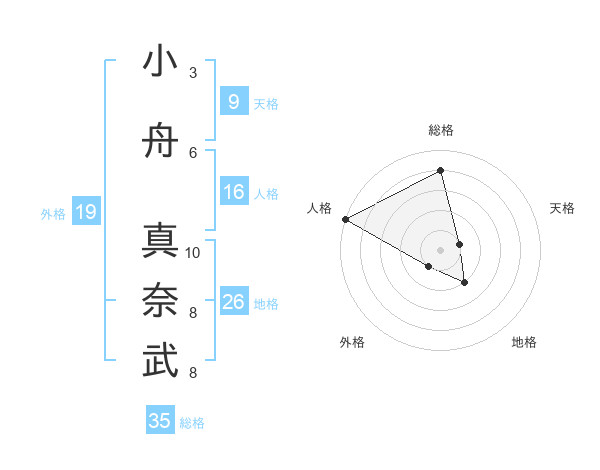 小舟 真奈武さんを姓名の画数から五運を鑑定