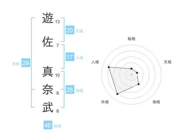 遊佐 真奈武さんの天格は20画の1点!