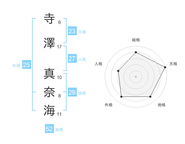 寺澤 真奈海さんを姓名の画数から五運を鑑定