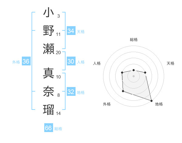小野瀬 真奈瑠さんの地格は32画の5点!