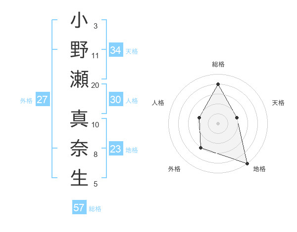 小野瀬 真奈生さんを姓名の画数から五運を鑑定