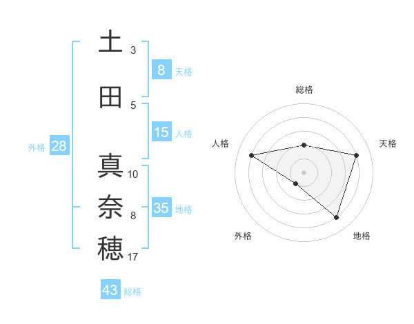 土田 真奈穂さんを姓名の画数から五運を鑑定