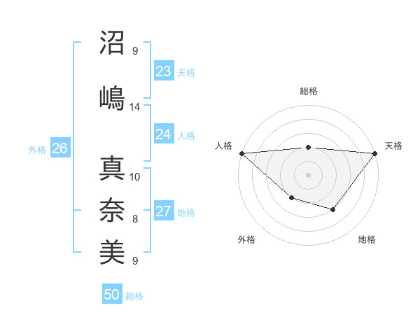 沼嶋 真奈美さんの総格は50画の2点!