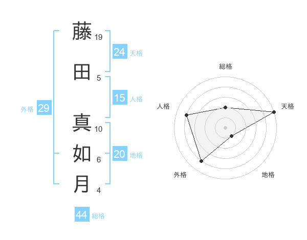 藤田 真如月さんを姓名の画数から五運を鑑定