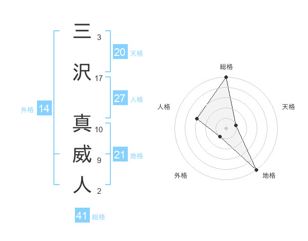 三沢 真威人さんを姓名の画数から五運を鑑定