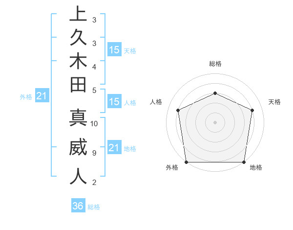 上久木田 真威人さんを姓名の画数から五運を鑑定