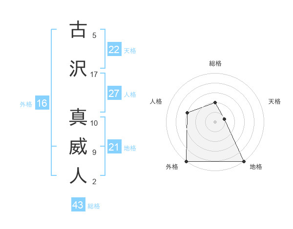 古沢 真威人さんを姓名の画数から五運を鑑定
