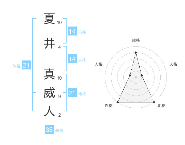 夏井 真威人さんを姓名の画数から五運を鑑定