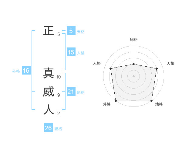 正 真威人さんの外格は16画の5点!