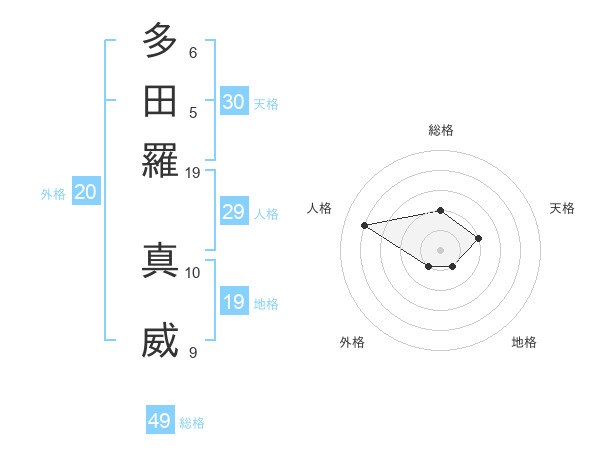 多田羅 真威さんを姓名の画数から五運を鑑定
