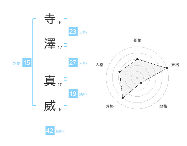 寺澤 真威さんの天格は23画の5点!