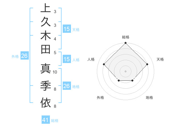 上久木田 真季依さんを姓名の画数から五運を鑑定