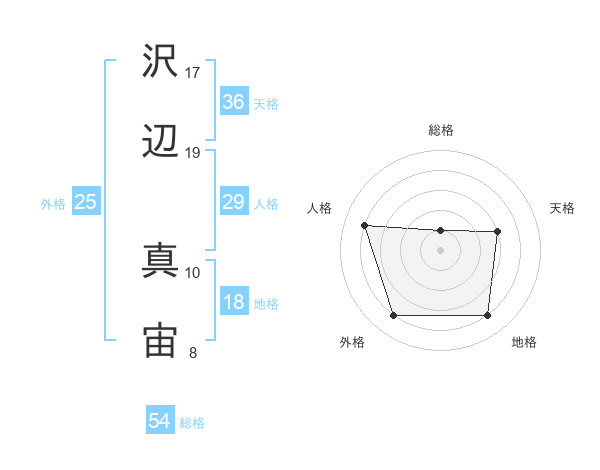 沢辺 真宙さんの外格は25画の4点!