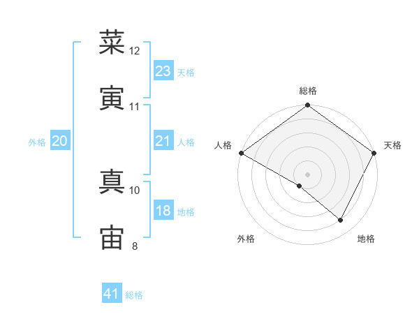 菜寅 真宙さんの外格は20画の1点!
