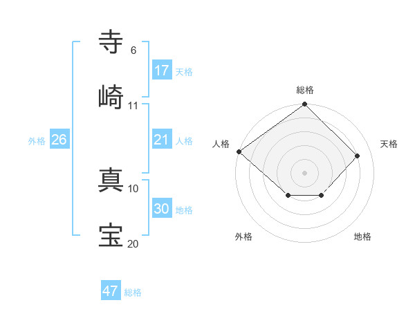 寺崎 真宝さんの総格は47画の5点!