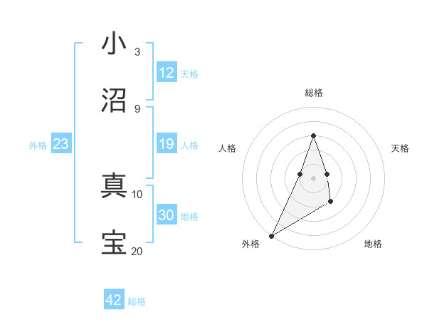 小沼 真宝さんの外格は23画の5点!