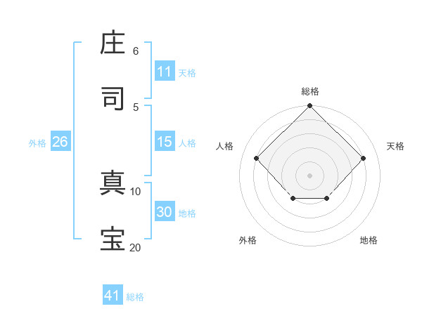 庄司 真宝さんの総格は41画の5点!