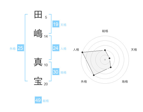 田嶋 真宝さんの総格は49画の2点
