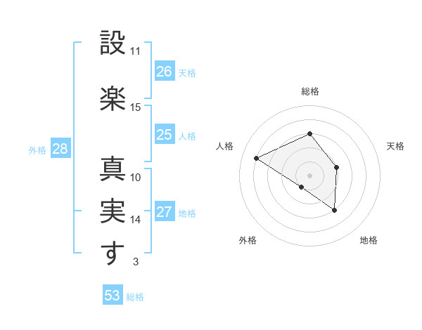 設楽 真実すさんの総格は53画の3点