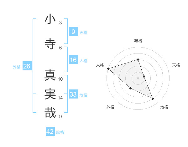 小寺 真実哉さんの総格は42画の3点!