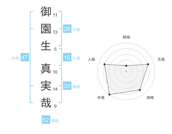 御園生 真実哉さんを姓名の画数から五運を鑑定