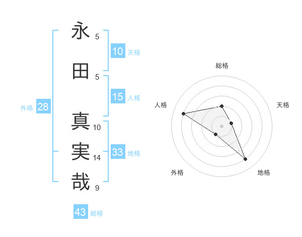 永田 真実哉さんを姓名の画数から五運を鑑定