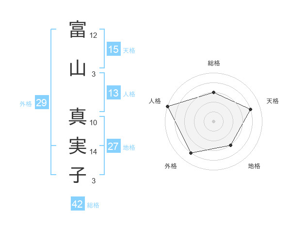 富山 真実子さんの天格は15画の4点!
