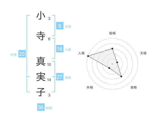 小寺 真実子さんを姓名の画数から五運を鑑定