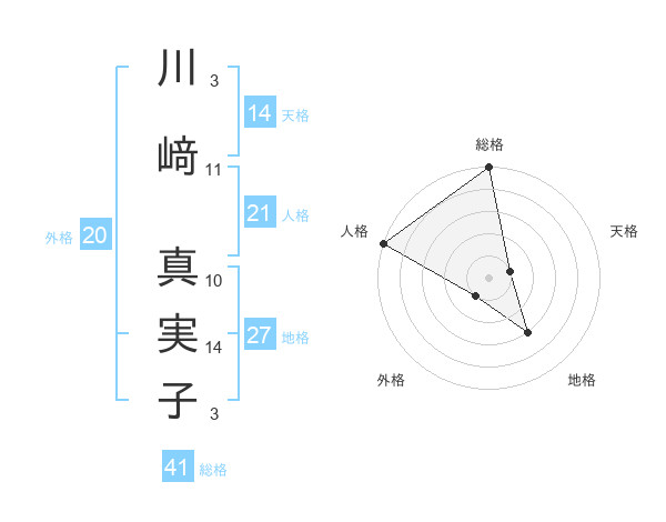 川﨑 真実子さんを姓名の画数から五運を鑑定