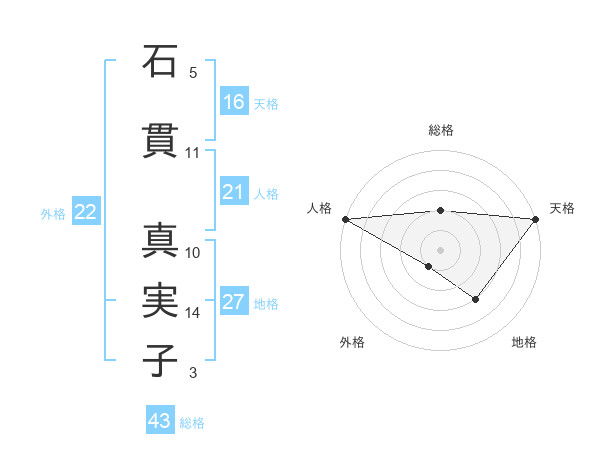 石貫 真実子さんを姓名の画数から五運を鑑定