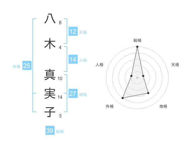 八木 真実子さんの総格は39画の5点!