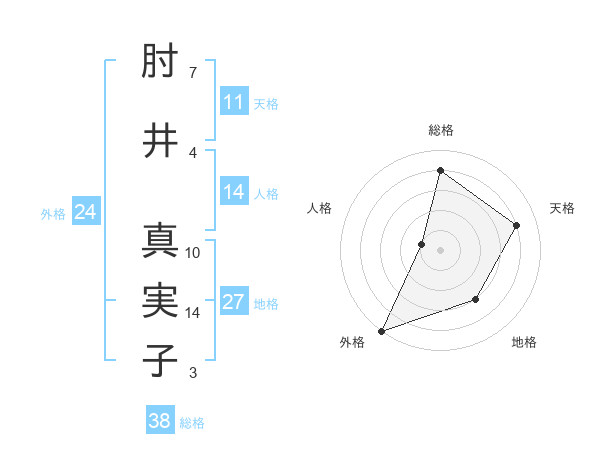 肘井 真実子さんを姓名の画数から五運を鑑定