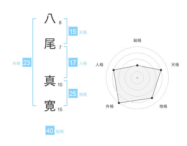 八尾 真寛さんの外格は23画の5点!