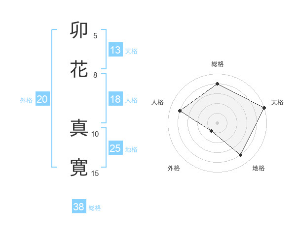 卯花 真寛さんを姓名の画数から五運を鑑定