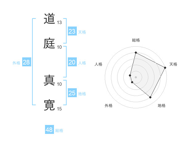 道庭 真寛さんの総格は48画の4点!