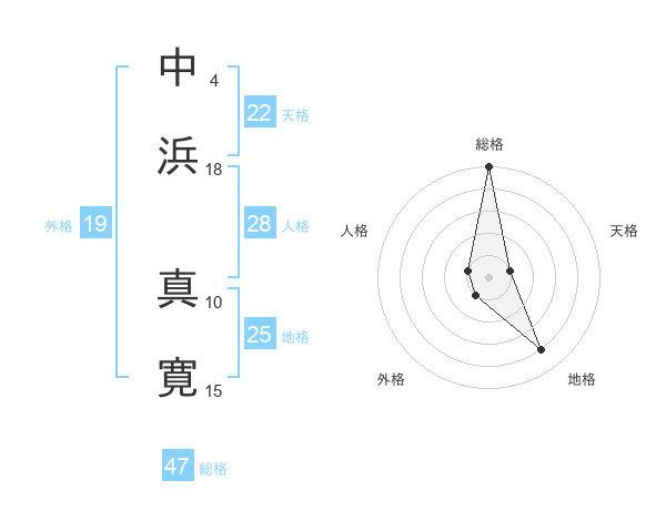 中浜 真寛さんの総格は47画の5点!