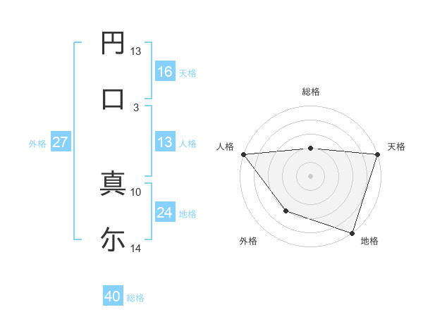 円口 真尓さんの天格は16画の5点!