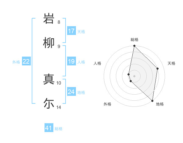 岩柳 真尓さんの総格は41画の5点!