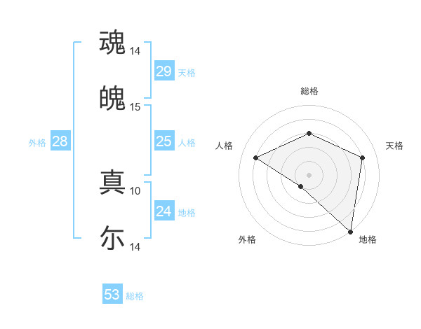 魂魄 真尓さんの総格は53画の3点!