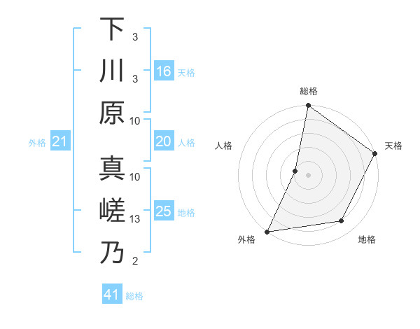下川原 真嵯乃さんを姓名の画数から五運を鑑定