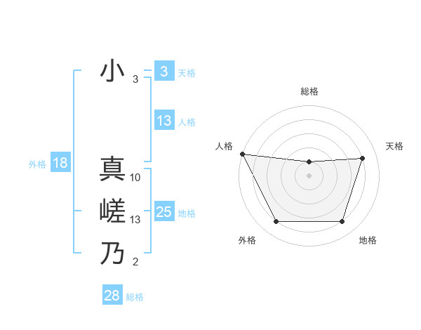 小 真嵯乃さんを姓名の画数から五運を鑑定