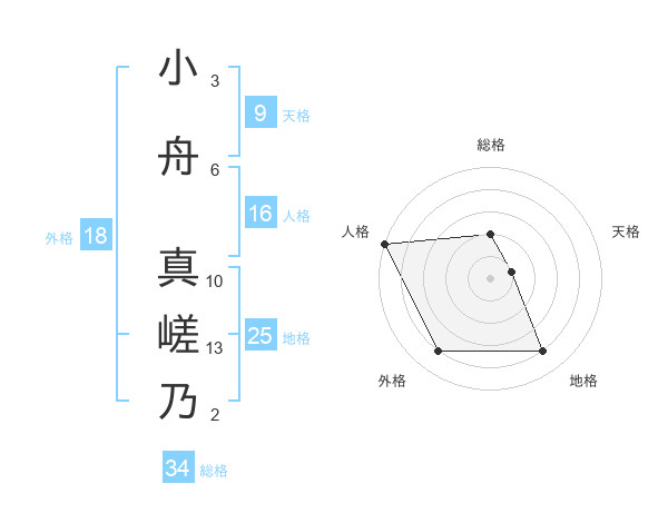 小舟 真嵯乃さんの外格は18画の4点!