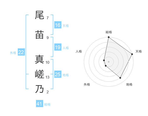 尾苗 真嵯乃さんの外格は22画の1点!