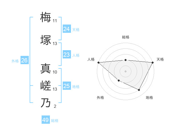 梅塚 真嵯乃さんの天格は24画の5点!