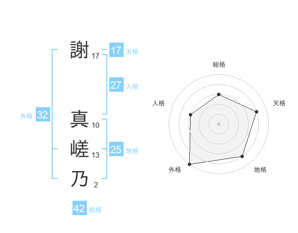 謝 真嵯乃さんの外格は32画の5点!