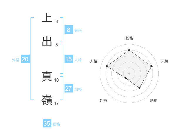 上出 真嶺さんの総格は35画の4点!
