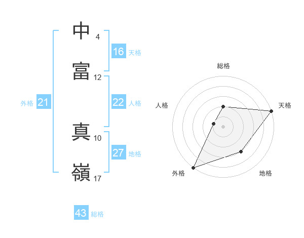 中富 真嶺さんを姓名の画数から五運を鑑定