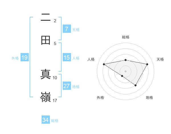 二田 真嶺さんを姓名の画数から五運を鑑定