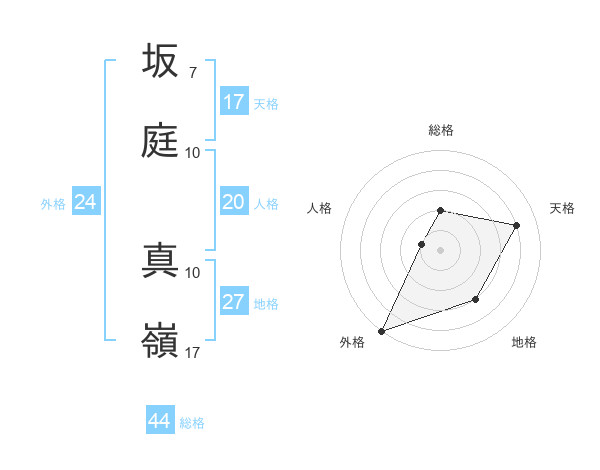 坂庭 真嶺さんを姓名の画数から五運を鑑定